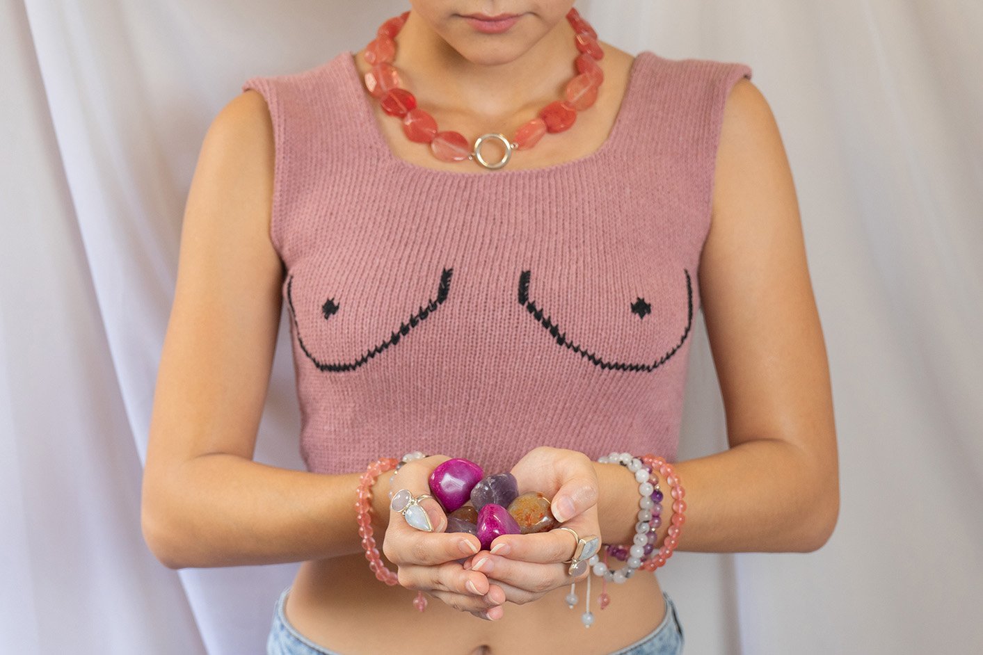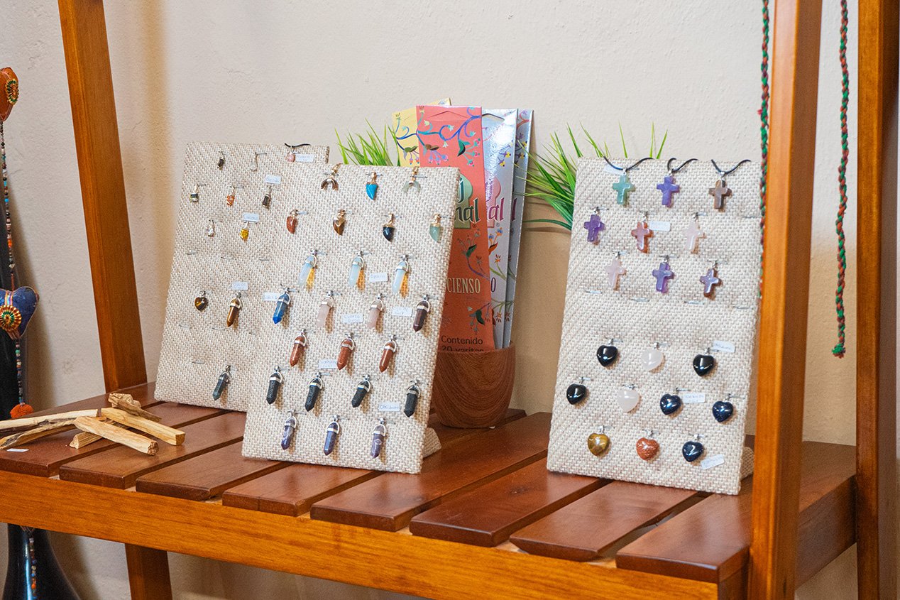En Mystes, el café comparte espacio con una curaduría de cuarzos, esculturas minerales y joyería diseñada para acompañar procesos personales y espacios cotidianos.